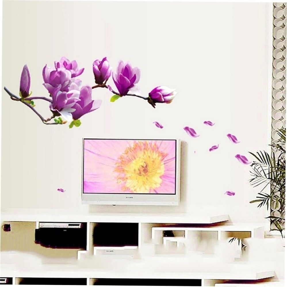 Hoem Decor Stickers Purple Magnolia Flower Wall Stickers Bedroom