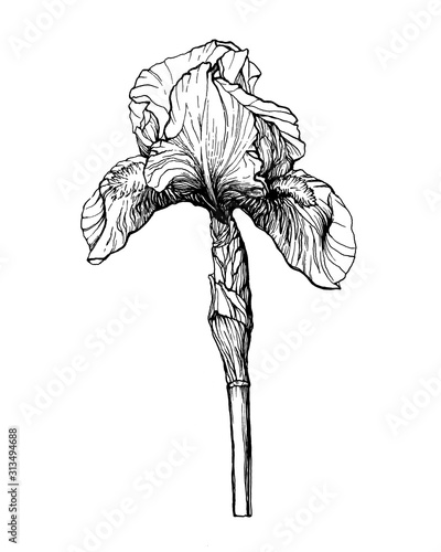 Vintage Drawing Beautiful Flower Iris Hand Drawn Ink Illustration
