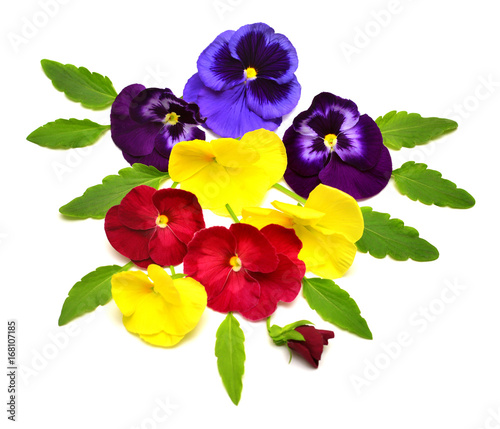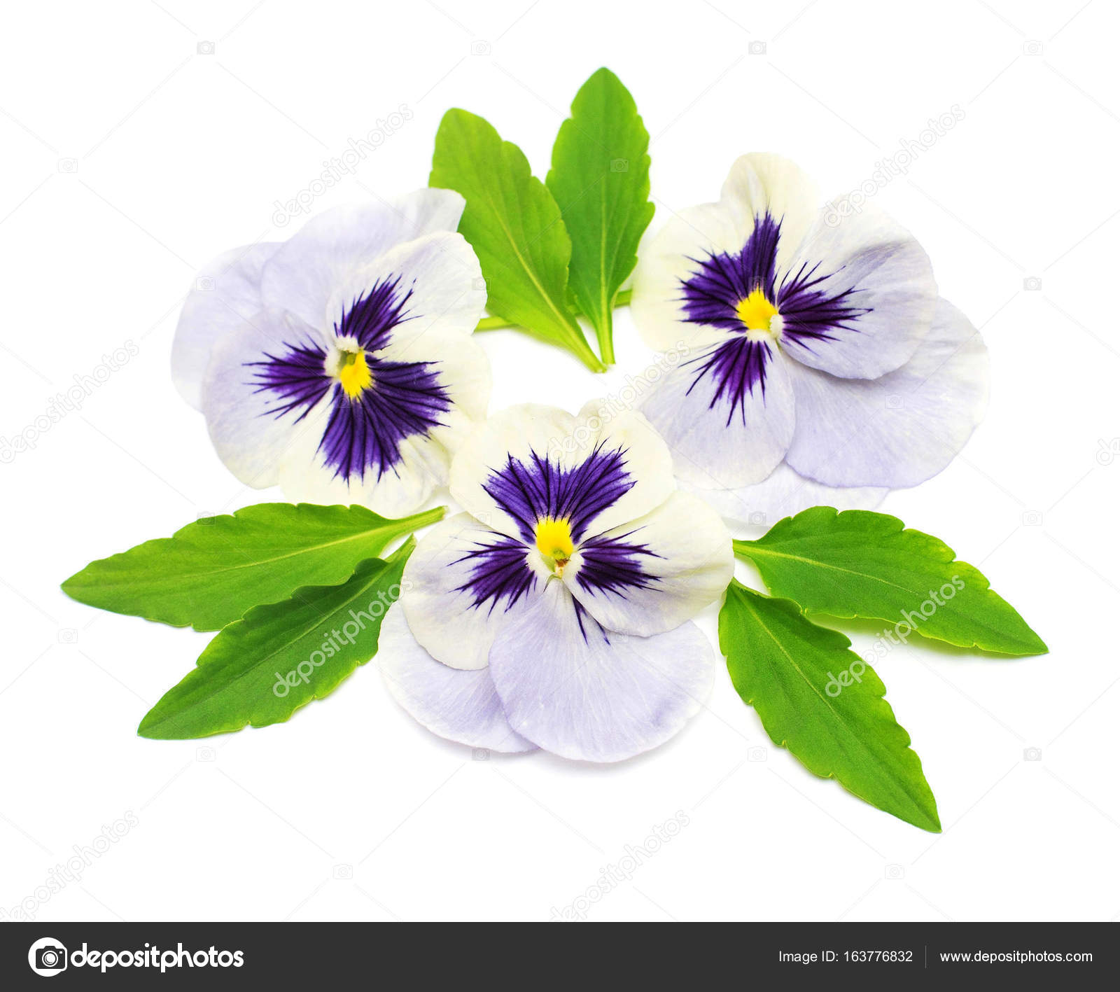 Pansy Flowers With Leaves Isolated On White Background Clipping