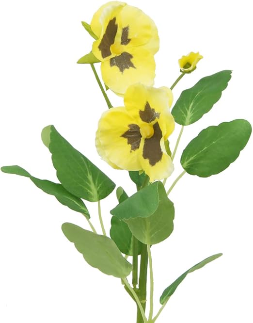 30cm Artificial Silk Yellow Pansy Flower Bush Posy With Leaves