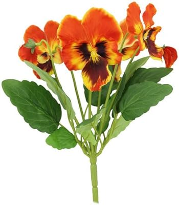 30cm Artificial Silk Orange Pansy Flower Bush Posy With Leaves